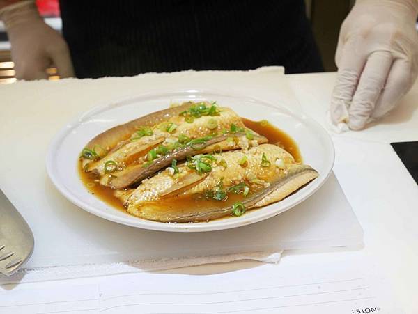 微帶甜味醬汁配上鮮嫩虱目魚肚,加上青蔥點綴
