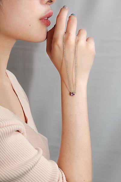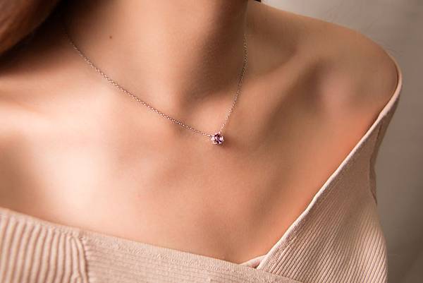 位置落在鎖骨的生日石短練十分百搭