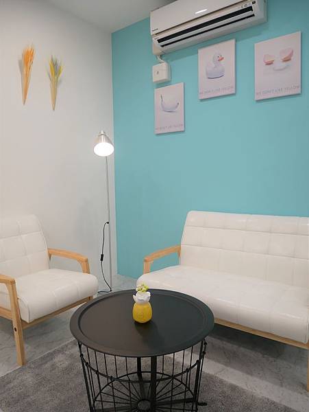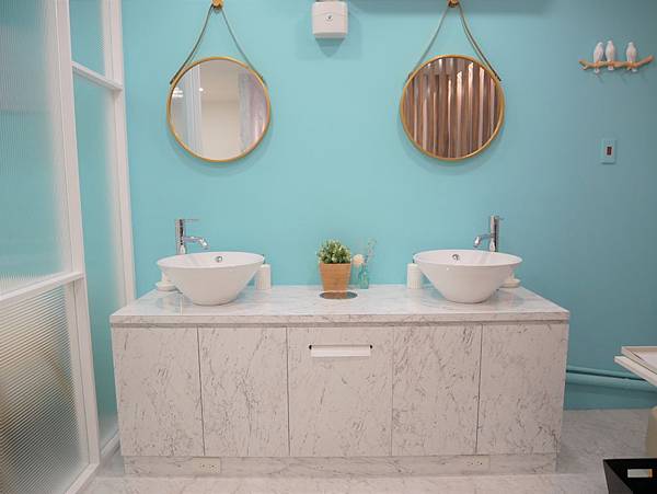 有著很多大理石元素,牆面還是大部分女生都喜歡的 Tiffany 藍