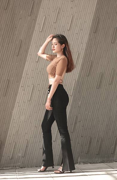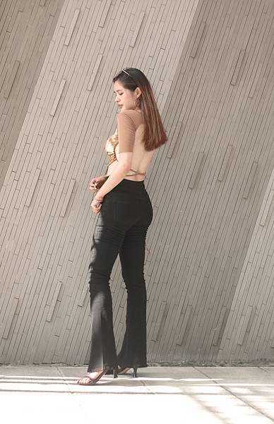 我這套搭配的是也能讓曲線很漂亮的喇吧褲